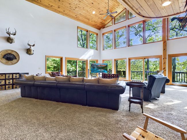 REDUCED $1, 100, 000.Check out this amazing Cedar Chalet on KY Lake. This stunning home is absolutely perfect for entertaining, with over 4900 square feet of open floor plan designed with entertainment in mind. The main level bar area offers a beautiful view overlooking the lake, while the lakeside features a wall of windows showcasing the breathtaking Kentucky Lake view. The home boasts multiple decks, a large screened-in porch, and a covered lower level area that's ideal for grilling. You'll also find a spacious lakeside deck and a large covered dock with 2 covered boat slips, one including a new lift and swim platform. Inside, you'll discover 4 bedrooms, each with its own bath, an open living area, and a large kitchen complete with hickory cabinets and granite countertops. This one-of-a-kind chalet is sitting on 1.13 acres of land and is truly a sight to behold. Trees have been cut giving home a beautiful view of KY Lake! Whether you're in search of a personal lake retreat or considering owning a vacation rental, this fabulous KY Lake Home is a must see!
