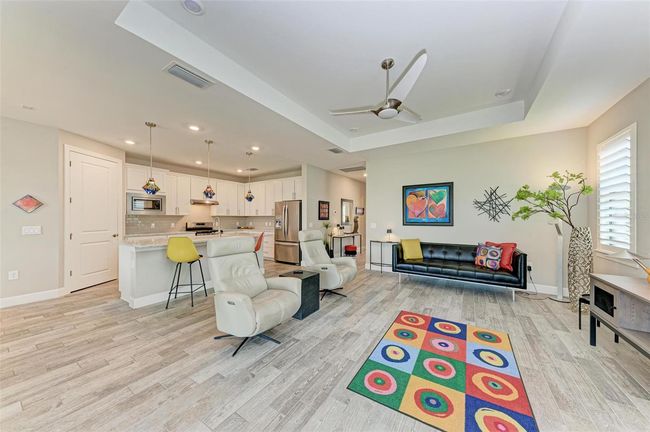 PRICED IMPROVEMENT!!! Welcome to the vibrant lifestyle of Del Webb Lakewood Ranch! Live like you are on vacation 365 days a year in this highly sought after 55+, gated, maintenance free community. This immaculately cared for, BUILT IN 2020- MYSTIQUE model boasts over 1900 sq ft of living space offering 2 bedrooms, 2 baths, and a versatile den. As you enter, you're greeted by the timeless charm of plank tile flooring, creating a seamless flow throughout the residence. The heart of the home is the spacious living area, perfect for entertaining guests or enjoying quiet evenings with loved ones. Enjoy preparing culinary delights in the gourmet kitchen, appointed with sleek quartz countertops, stainless steel appliances including a gas range, large breakfast bar and pantry. Retreat to the primary suite, a tranquil haven complete with a lavish ensuite bath featuring dual sinks, quartz countertops, large walk-in shower, separate water closet, and an oversized closet. Step outside onto your southern exposure extended covered lanai that beckons you to unwind and soak in breathtaking views of the serene pond. Whether you’re enjoying a cup of coffee or hosting al fresco gatherings, the outdoor oasis is sure to impress. Additional notable features include 3 CAR TANDEM GARAGE with epoxy floor, IMPACT GLASS WINDOWS, LEADED GLASS FRONT DOOR, PAVER DRIVEWAY & LANAI, TILE ROOF, REMOTE CONTROL ELECTRIC SHADES, PLANTATION SHUTTERS, AND 8’ SOLID CORE DOORS. Enjoy all that Del Webb has to offer with just a short walk to the Oasis Clubhouse where you will find a Resort-style Pool, State-of-the Art Fitness Center, Tennis, Pickle Ball, Bocce, Art Center, Billiard Room, Internet Cafe’, Restaurant, and Full-time Lifestyle Director on staff. This community is centrally located to shopping, restaurants, medical facilities, golf, three airports, and pristine gulf beaches. With its impeccable design and scenic surroundings, this must-see home offers the epitome of luxurious Florida living.