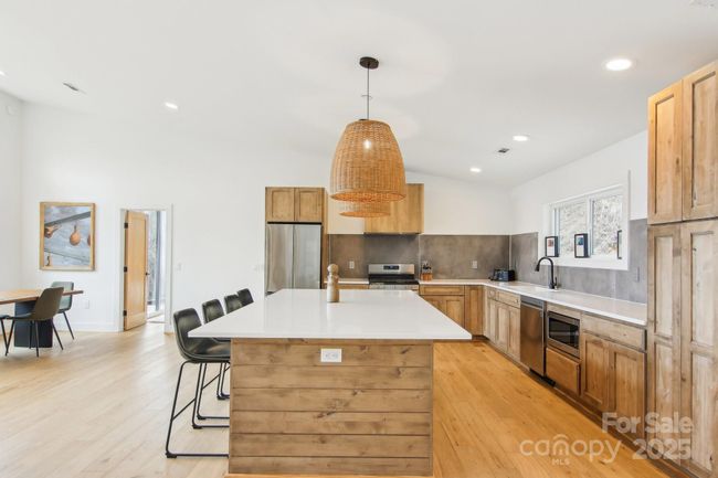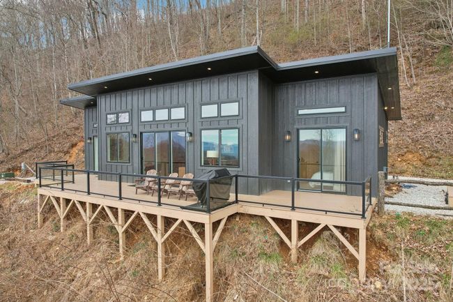 This Mountain Modern turnkey STR known as "The Lookout, " is the perfect blend of minimalist design & luxurious comfort. Near Bryson City, it’s west-facing with long-range sunset views, making it an ideal retreat. The exterior is both stylish and low-maintenance, featuring hardboard-type siding, Trex decking & a standing seam roof. The outdoor space has a hot tub & fire pit, providing an opportunity to enjoy the outdoors year-round. Inside, the home exudes modern elegance with an open concept & spacious design. The great room’s soaring vaulted ceilings create a sense of airiness & openness. The modern kitchen, a focal point of the space, features an enormous quartz island & top-of-the-line stainless steel appliances. There’s a gas-log fireplace & large windows throughout allowing natural light to flood in. The home's layout thoughtfully separates the bedrooms. This home truly combines the best of modern design & nature, providing a peaceful, luxurious haven in an unparalleled location.