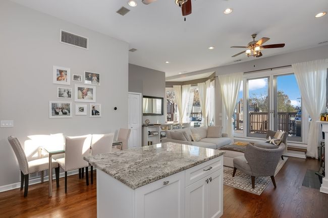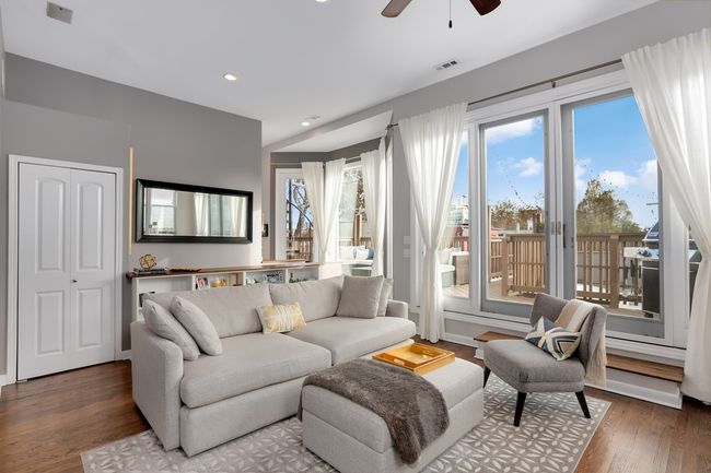 This luxurious Bucktown penthouse is a must-see. It's perfectly located steps away from the heart of Wicker Park while being comfortably tucked away on a tranquil, tree-lined street. As you walk in, the first feature you will notice is the incredible amount of natural light from all sides. The unit spans the entire top floor and provides a unique, open layout that includes 12 ft high ceilings. The main living area leads to TWO private decks comprising an outdoor space perfect for entertaining, dining, and relaxing accompanied by a set of spiral stairs that brings you to a rooftop deck with stunning skyline views. The back deck also leads to the garage spot included with the unit. This home has had important updates since 2015 which include a new water heater (2020), updated HVAC (2016), a custom kitchen with built-in wine fridge, renovated master and second bathroom, hardwood floors, and closet built-ins. Additionally, there is an in-unit washer and dryer and bountiful storage space. The association is well-run and has recently completed the following significant projects: side block sealed and tuck-pointed (2020), roof sealed and coated (2020), and new entryway metal staircase (2019). The location is exceptional and only blocks away from the Damen Blue Line, the 606 trail, Aldi, Walgreens, and some of the best food and drinks (e.G., Big Star, Mindy's Bakery, Violet Hour, Goddess and the Grocer) and shops (e.G., North Face, Lululemon, Marine Layer, Burton) in the area! Everything that Bucktown and Wicker Park have to offer is just outside your door. Don't settle for the cookie cutter 2bed/2baths and make sure you see this unique and well-located place for you to call home!
