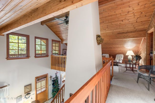 Charming German-Built Knotty Pine Chalet - Mountain Retreat This move-in ready, German-built knotty pine chalet exudes warmth, character, and timeless craftsmanship. Step inside to find an impressive stacked-stone fireplace, soaring natural wood ceilings, and a hand-crafted staircase with loft railing—true hallmarks of its authentic design. Offering 2 bedrooms, 2.5 baths, a bonus room/office, plus a spacious loft currently serving as an additional bedroom and family space, this home provides versatile living for families, guests, or remote work. The main-level primary suite ensures convenience, while the walkout balcony invites you to soak in sweeping views of the peaceful mountain wilderness—your own private retreat. Perfectly tucked away on a flat, secluded lot atop the mountain, this chalet offers both serenity and accessibility—just 16 miles to Crossville, 14 miles to Fairfield Glade, 8 miles to Flat Rock Racetrack, and 48 miles to Farragut, TN. The property sits within a friendly, private neighborhood featuring public water, reliable internet, and brand-new fiber (up to 1 Gbps) being installed this month. Best of all, the home is grandfathered into the development, making HOA fees voluntary—a rare and valuable perk. Whether you're seeking a full-time residence, weekend escape, or investment opportunity, this Swiss-inspired mountain chalet blends rustic charm with modern comfort in a one-of-a-kind setting. Don't miss your chance to call this mountain retreat your own.