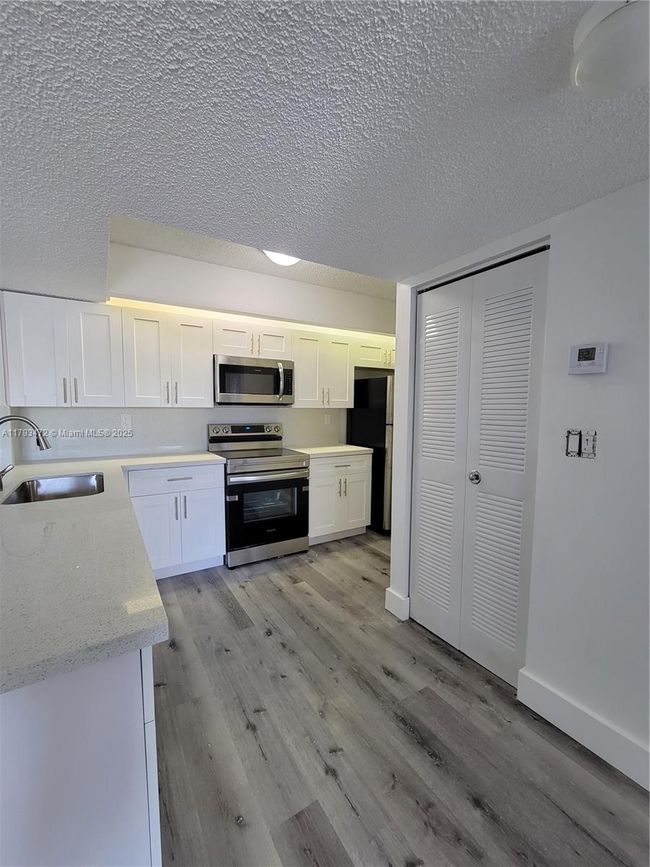 Got renovated 1 bed 1 bath currently leased until May 31 2026 in a well managed, gated community with reserves. Laminated floors throughout, full size washer & dryer, balcony, assigned parking and more. Kitchen offers stainless steel appliances and quartz countertops. Beautiful lake just steps from the unit. Community offers pool, sauna, tennis court, gym and BBQ area. Easy access to schools, shopping centers, supermarkets, US-1 and Turnpike. Management on-site. Low HOA!