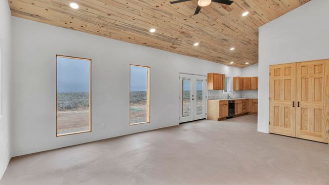 Magical Sunsets & Mountain Views Daily ~ Welcome to the third, extra special, and sustainable residence within the newly developed Taeo Loop Neighborhood of El Prado, Taos, New Mexico. This freshly finished 2 bed 2 bath 1, 088 sqft home on 1 acre is a rare find in this sought after growing region of town. The construction is top-tier, and the home is ahead of the rest when it comes to the possibilities for saving on energy, and saving the planet being that infrastructure is in place for converting to solar if one desires. In the meantime, the solar room could be used as extra storage. The open floor plan is highly functional, and it's as if the home is double the size with the high vaulted ceiling in the living area and spacious shiny kitchen equipped with upgraded stainless steel kitchen appliances. Each of the bedrooms are large enough for big beds, the bathrooms are comfortable and sleek, and the laundry room with a full-size washer & dryer and extra storage ideal for keeping things organized. Some of the home's special features include tongue & groove ceilings, South facing floor-to-ceiling windows bring in solar passive energy throughout the day, keep the home well lit, and will be a popular place for growing tomatoes inside. The stained concrete floors make the on-demand hot water radiant heated floors extra efficient, and a steady breeze enhanced by the overhead ceiling fans promotes even greater climate control. The attached carport will make for a short trip indoors during the snowy season, and the pitched metal roof will require very little maintenance over time..As for the views, these simply cannot be beat, especially at sunset, sunrise, or a lunar/solar eclipse in the High Desert. Close proximity and outlet to Taos Ski Valley, the Rio Grande River, and all the trails for outdoor fun. Some photos have been virtually staged. Don't wait, and get in early on this newly built home, in the lovely Taeo Loop Neighborhood!