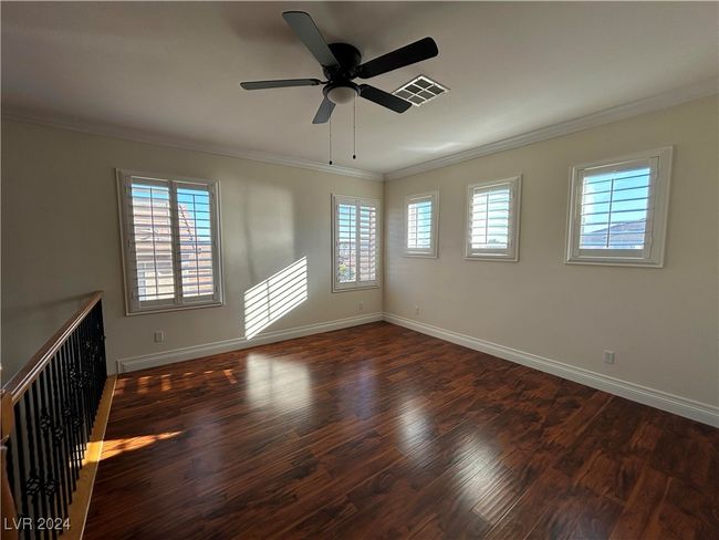 Beautiful 5-bedroom home, move-in ready and filled with upgrades! Enjoy a spacious kitchen with granite counters and plantation shutters on every window. Convenient downstairs bedroom with adjacent ¾ bath. Crown molding throughout adds elegance, while ceiling fans in all bedrooms keep things comfortable. Family room features surround sound for the ultimate entertainment experience. Rent includes trash service and HVAC filter program. A small dog under 30 lbs (at maturity) will be considered with an additional deposit. Sorry, no cats