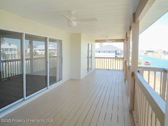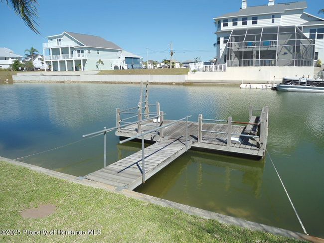 Waterfront home located in deed restricted Hernando Beach South with indirect access to the Gulf of Mexico. This move in ready home has a new roof in 2025, freshly painted interior and exterior, new carpeting and flooring, and both baths have been updated. This home features an eat-in kitchen with granite countertops, breakfast bar, panty and French doors that lead out to the lanai; the spacious great room has a vaulted ceiling and sliders that open up to the lanai, the updated primary bedroom suite bath has dual sinks and a walk-in shower, and bedrooms 2 & 3 are generously sized. The lower level has almost 1600 square feet of garage and storage space. The back yard has vinyl fencing and there's a floating dock to fish off of and to dock your boat.