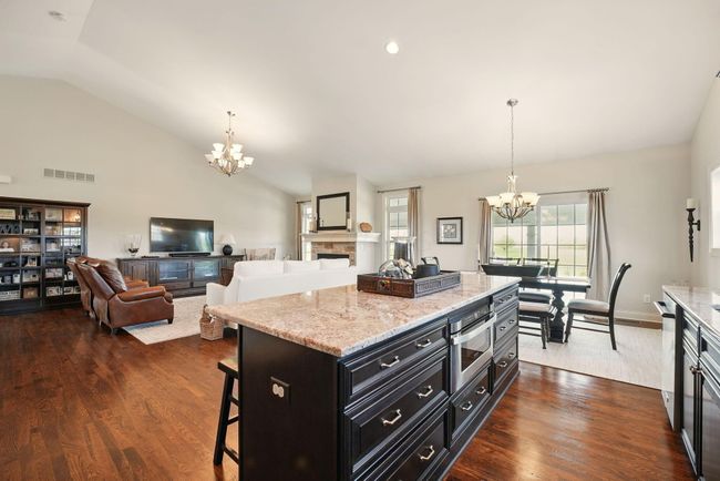 Welcome to this breathtaking custom home set on 5 private acres, offering 4, 400 sq ft of finished space thoughtfully designed for comfort, style, and entertaining. With 3 spacious bedrooms, 3.5 baths, and an incredible 5-car garage, this home is a rare find for those who value space, elegance, and functionality. Step into the expansive great room where cathedral ceilings, rich wood flooring, and a stone fireplace create a warm, inviting focal point. The open-concept kitchen is ideal for entertaining, featuring ample workspace, premium finishes, and seamless flow throughout the main floor. The luxurious primary suite is oversized and serene, boasting a spa-like bath with a huge walk-in tile shower, double vanity, and large walk-in closet. Two additional bedrooms are equally spacious, perfect for family or guests. The gigantic finished basement is an entertainer's dream, complete with a full bath, egress window, and a custom-built wood bar ready for game nights and gatherings. Step outside to your private outdoor oasis with a sparkling in-ground pool and a large covered patio, ideal for enjoying peaceful evenings or hosting unforgettable summer get-togethers. This one-of-a-kind property combines luxurious finishes, wide-open living, and the serenity of nature—all just waiting for you to call it home.