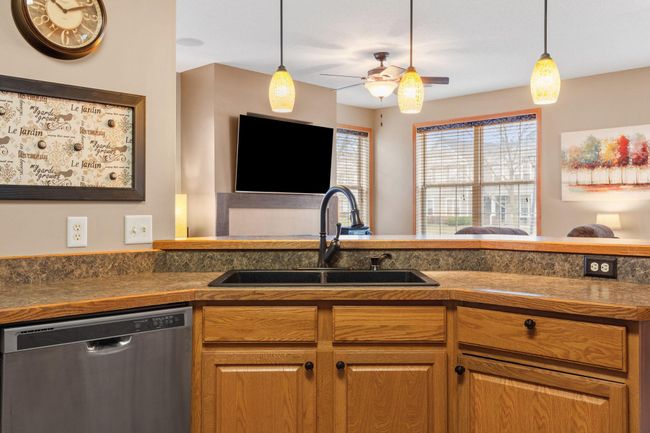 Experience the ease of open-concept living in this well-maintained sun filled end-unit townhome. The kitchen features stainless steel appliances and a large island that overlooks the living and dining areas perfect for both everyday living and entertaining. Enjoy the cozy gas fireplace adding warmth and charm, making it an inviting space to relax. Upstairs, a versatile flex space offers the ideal setup for a home office or family room, alongside a secondary bedroom and a convenient laundry room. The spacious primary suite provides a peaceful retreat with a walk-in closet and an ensuite bathroom featuring a double vanity. Step outside to a semi-private patio just off the main entrance, perfect for relaxing or hosting guests. Ideally located near Seidl's Lake Park, shopping, and local restaurants! Updates include: Screen door 2024, Painted shutters 2024, Roof 2023, Floors 2023, Driveway 2021.