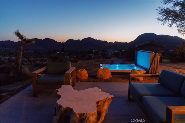 ***BEAUTIFULLY REMODELED JOSHUA TREE HIGHLANDS HOME*** Steps away from the national park, this three bedroom, two bath home is a modern sanctuary surrounded by Joshua Trees with endless panoramic views of the desert from every room. This meticulously designed and stylish home is perched on 2.07 secluded acres on its own private drive. The light and airy house has an open floor plan, with a great room that features 12-foot folding glass doors that open to a birdwatching and yoga patio, as well as a large projection screen for a home cinema experience. A sleek and modern chef’s kitchen is great for entertaining, and offers a large and custom island with barstools, perfect for preparing and sharing meals with friends and family. Just off the great room there’s a reading area that opens up to a fenced garden that has a refreshing outdoor shower and gorgeous views of the park. The great room also connects to the primary suite that features a large ensuite bathroom with a walk-in rain shower and a picture window with inspiring long-views that go on forever. The primary suite has glass doors that open up a private garden, embellished with an outdoor cooking area and additional sitting areas. Two additional view bedrooms flank the great room with a guest bathroom. Multiple patios and walkways surround the home and include a fenced in backyard area with loungers and an umbrella in the garden, perfect for experiencing the nature including hummingbirds, migrating birds and butterflies. The 6-seat Jacuzzi is amazing for stargazing and for soaking in the peaceful desert flora and fauna. Spacious rooms offered FULLY FURNISHED with art and decor from local artisans, PAID OFF SOLAR, an EV charger, an outdoor ping-pong table and more. Just five minutes from the Joshua Tree’s downtown and national park, this private oasis is a very established vacation rental ranked as the top 1% of all rentals on Airbnb.