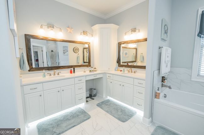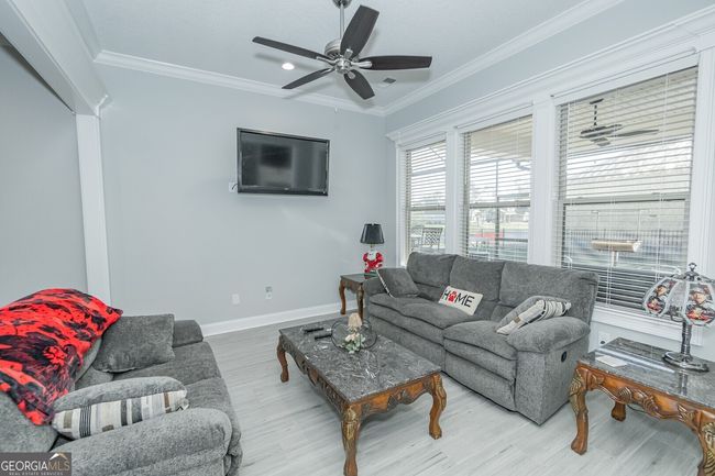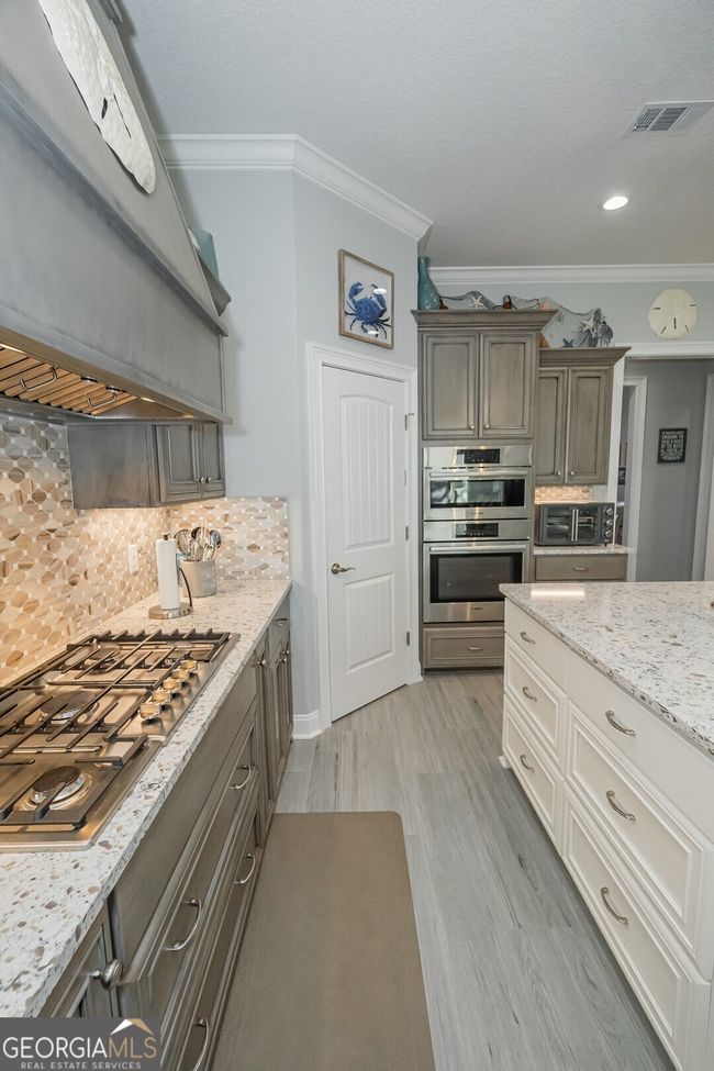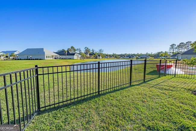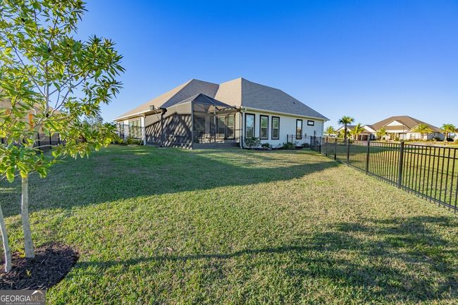 Discover luxury living in this breathtaking 4-bedroom, 3-bathroom home nestled on a beautifully manicured half-acre lot in the prestigious gated community of Fiddler's Cove. Built just three years ago with premier construction standards, this remarkable residence showcases sophisticated design with soaring 10-foot ceilings, elegant crown molding, and gleaming tile flooring throughout the living spaces. The heart of this home features an open-concept floor plan perfect for modern living and entertaining. The spacious living room captivates with stunning coffered ceilings, while the family room creates a cozy retreat around the beautiful brick gas-log fireplace. Step outside to your private oasis - an expansive screened lanai offering year-round enjoyment with tranquil pond views. The gourmet kitchen stands as the crown jewel of this home, equipped with top-tier Bosch stainless steel appliances including a gas cooktop, Wi-Fi-enabled convection wall oven, and built-in convection microwave. It also has a GE Cafe refrigerator with French doors. The space is elevated by quartz countertops, under-cabinet lighting, and thoughtful storage solutions including a slide-out spice drawer and walk-in pantry. A large center island and bar with counter-height seating for four makes this culinary haven perfect for both daily living and entertaining. Escape to your personal sanctuary in the oversized primary suite featuring an impressive 18x11-foot sitting area, generous walk-in closet, and spa-inspired bathroom complete with dual vanities, spacious walk-in shower, and relaxing soaking tub. The impressive 35x31-foot garage provides ample space for vehicles, boats, and golf carts, while the floored attic offers additional storage with a convenient 400-600 pound capacity hoist. Fiddler's Cove offers resort-style amenities including a private pool, fitness center, and playground within a secure gated environment. Residents enjoy the peace of mind with no flood insurance requirements and prime location benefits with easy access to I-95, Kings Bay Naval Base, quality schools, shopping, and dining. Seller includes a comprehensive Old Republic home warranty with accepted offers. This exceptional property combines luxury finishes, thoughtful design, and prime location to create the perfect home for discerning buyers seeking quality and convenience in coastal Georgia.