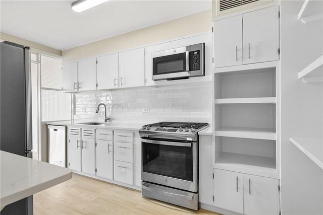Located in the Larchmont Terrace building, this two bedroom, two bath unit encompasses 1, 475 square feet of sunny living space. This timeless doorman building offers classic charm and modern convenience in a desirable setting near town. Inside, the beautifully updated unit provides a series of open living spaces with hardwood flooring and natural light throughout. The oversized living room seamlessly connects to a formal dining room, while the newly remodeled kitchen boasts stainless appliances, quartz counters, and new vinyl flooring. Three hallway closets include a bonus office space with new shelving. The primary suite offers new carpeting, custom closet, walk-in closet, private full bath, and access to a covered porch. A second bedroom with two closets. In its premier location, this gorgeous unit is moments from Larchmont shops, parks, dining, and transportation. Residents are eligible to join Larchmont Manor Beach and Hommocks Pool. Assigned parking space is included.