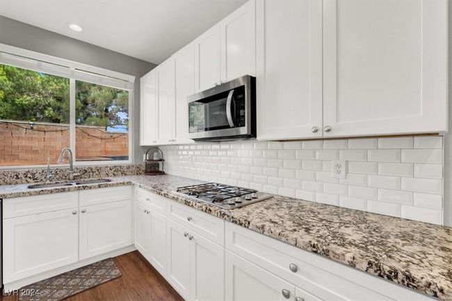 Beautifully appointed and highly upgraded 4 bedroom pool home located in the heart of summerlin. Easy access to schools, shopping at downtown summerlin, freeways, parks and kihing trails and minutes from world class entertainment of the las vegas strip. Open floor plan with formal living and dining room at entry. Upgraded flooring and paint schemes throughout. Oversized family room adjacent to a chef's dream gourmet kitchen with level 3 granite countertops, custom subway tile backsplash, flat panel 42" upper cabinets with hardware, double ovens and gas cooktop. Bedroom and bath downstairs. Large oversized loft area with closet that can easily be converted to a 5th bedroom. Private rear yard with built-in bbq, pool and covered patio is just the perfect place to relax with family and friends after a long vegas day. Backs up to community park with trails, basketball or grassy areas. Call us today this one will not last long.