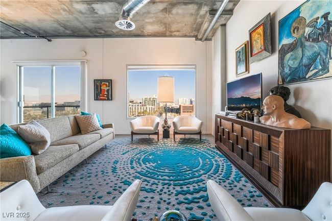 Welcome home, to Soho 904....A stunning high-rise condo with a spacious 1, 575 sq. Ft. Open, create your own space layout, where you are only limited by your own creativity. Unit features polished concrete floors, 11-ft ceilings, large windows with beautiful views, and a spacious terrace. The kitchen features European style cabinetry, mobile island, stainless steel appliances, and black granite countertops. Master bedroom areas features west-facing window, blinds, ceiling fan, and custom closet. Master bath includes granite countertops, Kohler fixtures, jetted tub, and glass enclosed shower. The Soho Lofts includes a rooftop gym, outdoor pool/spa, secured parking (unit includes one dedicated space), front desk security, and ground floor retail shops. Located in the heart of the Arts District in Downtown Las Vegas, this home offers easy access to I15, US95, The Strip, Fremont St Experience, dining, shopping, and so much more. . Furniture is available for purchase separately.