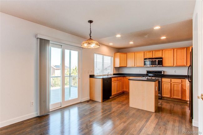 Fantastic home with an open floor plan ready for your personal touch. Soaring ceilings in the living room and dining room combination, hardwood floors, and lots of natural light. Features 4 bedrooms, 4 bathrooms, a loft, a finished garden-level basement with large windows, and A/C throughout the home. The kitchen includes black appliances, gas stove, island, and eat-in area that opens to the family room with ceiling fan and gas fireplace. Oversized 2-car garage and main floor laundry for convenience. Primary suite includes a 5-piece bath, walk-in closet, and ceiling fan. Two additional bedrooms upstairs plus a full bath and a loft overlooking the living room. Finished basement has a large great room, full wet bar, 3/4 bath, and a room (office/bedroom) with sink, closet, and egress window. Enjoy the large 26 x 12 deck off the kitchen, with stairs leading down to a fully fenced backyard. Sprinklers in the front and back. Recent upgrades include a new furnace (2025), concrete front patio, blinds, interior paint (2025), and a new roof and exterior paint (2024) that beautifully complements the brick exterior. Great location near top-rated schools, Wildcat Ridge pool, walking paths, Lone Tree Rec Center, Lone Tree Hub, Park Meadows Mall, and easy access to C-470 & I-25. Seller offering buyer a 1- year home warranty through 2-10 Home Warranty Supreme.