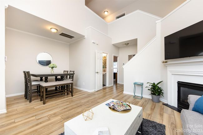 Stylish Matthews Townhome! Upon entry, you are greeted with double height ceilings and a cozy fireplace in the living room with the kitchen tucked away in the back with granite countertops. Stainless Steel appliances with custom tile work. This home has the primary bedroom and full bath located on the main floor, while all the other bedrooms are on the upper floor. This house has wood and tile flooring all throughout with lots of natural light. Upstairs you will find two bedrooms, a laundry room, and a loft/bonus area. There is an attached garage with room for storage. The backyard backs up to a private green space and has a nice patio for grilling out and relaxing. This townhouse is minutes from Downtown Matthews, Uptown and The Greenway. Nearby neighborhood pool & the water, trash, and yard maintenance are included in the HOA fee.