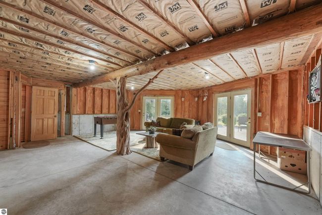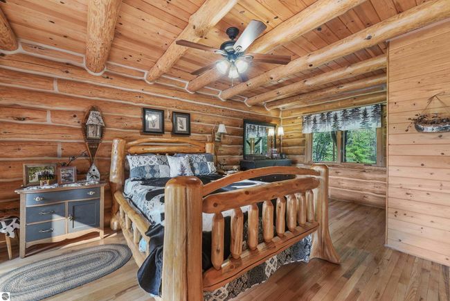 A true retreat for the avid Outdoorsman, this magnificent Log Home sits on 30 Acres with stunning frontage on the Clam River! Whether you enjoy kayaking, canoeing, or simply immersing yourself in nature, this property offers unmatched tranquility with direct river access and neighboring state land. A peaceful pond attracts abundant wildlife, making this an ideal escape for those who appreciate the great outdoors. With nearly 2, 500 square feet of meticulously designed finished living space, this 4-bedroom, 3.5-bathroom home blends rustic charm with modern comfort. Expansive floor-to-ceiling windows showcase the natural beauty surrounding the home, while the circular drive, detached garage, and inviting front porch add to the secluded, welcoming feel. Inside, the craftsmanship is remarkable, highlighted by a grand log staircase that serves as a stunning centerpiece. The main-floor primary suite offers a private balcony and full bath, while the two upstairs bedrooms each feature en-suite bathrooms and their own balconies, providing a perfect place to take in the peaceful setting. The lower-level walkout includes a spacious living area ready for your finishing touches and an additional large bedroom, ideal for guests. Unique details throughout the home include handcrafted wooden blinds in the kitchen and bathrooms, heated floors on the main level, and radiant heat upstairs for optimal comfort. Ample storage and abundant natural light further enhance the homes inviting atmosphere. As a bonus, the home is being offered partially furnished, allowing for an easy transition into this one-of-a-kind property. With exceptional craftsmanship, incredible views, and direct access to outdoor recreation, this is a rare opportunity to own a true Northern Michigan wilderness escape.