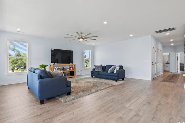 Lowcountry style on an oversized lot - marshfront home in Garden City with NO HOA, golf cart to the beach & pier! Built in 2022 on the marsh in the Horry County section of Murrells Inlet, east of 17 Business, this Lowcountry-style home on Elizabeth Drive offers what so many buyers search for: marsh views, no HOA, room for boats and RVs, and a golf cart ride to Atlantic Ave, Garden City Pier, Sam's Corner, the beach, parks, and restaurants. Rarely do homes like this come available in such a prime location. From the moment you pull in, you'll notice the wide driveway with ample parking for your RV, boat, trailers, and all your beach toys. There is even room to add a pool and create your own private coastal retreat. Elevated construction provides covered parking and a spacious garage/flex space with a full bath - perfect, as a workshop, home gym, or future in-law suite potential. Step upstairs and feel the light. The open floor plan is filled with natural light from large windows that frame peaceful marsh views and glowing sunrises. Neutral LVT flooring flows throughout the main living areas, creating a clean and coastal look. The kitchen is the heart of the home, featuring white soft-close cabinets, quartz countertops, stainless steel appliances, a large island with stool seating, pantry, and a dining area with expansive views. Whether you are hosting or enjoying a quiet dinner, the space feels open, bright, and connected. The living room opens to a full-length porch overlooking the marsh - stunning views for your morning coffee as the sun rises over the water. A second full-length porch offers additional outdoor living space, including private access from the primary suite. The thoughtful split-bedroom layout includes three bedrooms and two full baths on the main level. The primary suite includes a walk-in closet and private en-suite with walk-in shower. The additional bedrooms also include walk-in closets and easy access to a full bath. A dedicated laundry room adds convenience. Life here feels easy and relaxed. Imagine crabbing from your backyard, catching redfish or speckled trout in the winter, riding your golf cart to Sanford Cox Park for playground time, BBQs, and pier fishing, or heading to the beach for sunset walks. You're minutes from Garden City Pier, shopping, grocery stores, and local favorites - all without giving up marshfront living. This home works beautifully as a primary residence, second home, or investment property. The oversized lot and flexible lower level offer future expansion possibilities, including additional living quarters or rental potential. Do not miss this incredible opportunity to own a slice of Murrells Inlet paradise. Measurements are not guaranteed. Buyer is responsible for verifying.