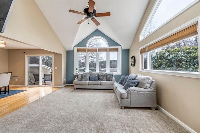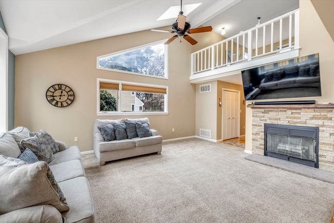 Gorgeous waterfront townhome with spectacular views! This modern updated unit has stunning views of beautiful Solomon Pond from your living room, dining room, kitchen, loft and second bedroom windows. The open-concept floor plan features vaulted ceilings, skylights, and an abundance of natural light. The updated kitchen is complete with sleek granite countertops, a breakfast bar, gas stove a stainless steel fridge. Newly refinished hardwood floors throughout. The dining room boasts a slider leading to the private deck. Upstairs, the loft area makes for an ideal home office or reading nook. The master suite includes double closets and a private bath with a tub/shower. The second bedroom also enjoys water views and ample closet space. Gas heat and cooking, one attached garage and laundry room! Pet friendly complex. Close to shopping, dining, and major highways, this waterfront retreat is a rare find and won’t last long!