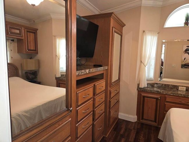 BLUE CYPRESS GOLF & RV RESORT: Meticulous 2014 home offers 1 bd 1 BA w/908 sf & 3, 031 total sf. Living Room features large windows overlooking golf course, impact entry door and ceiling fan. Kitchen has newer appliances, including DW. Bdrm features built-in storage & ceiling fan. Walk-in shower. Bonus room can be used for office, craft or 2nd bdrm. Temporary wall can be removed to add addtl living space. Indoor W/D. 8x10 shed provides addtl storage/workshop. Slab walk way & pavers allow for outdoor living space. Perfect location for golfers and boating enthusiasts. Dock space & boat ramp available providing access to Lake Okeechobee. Community offers newer pickleball court, clubhouse, shuffleboard court & pool. This home has been exquisitely decorated and comes furnished.