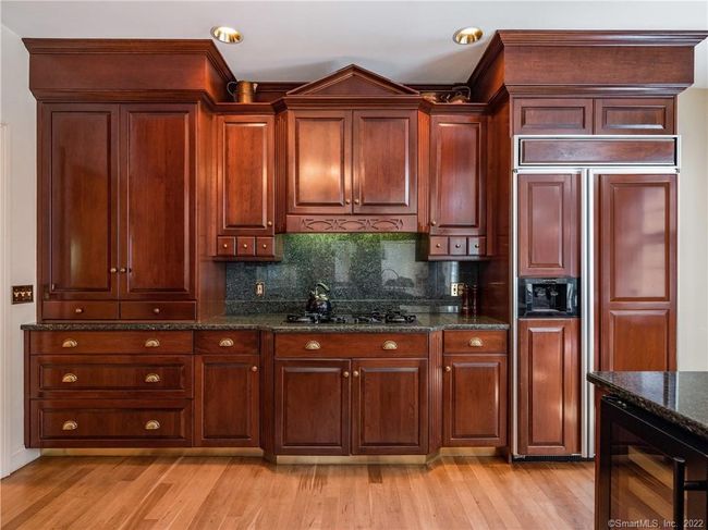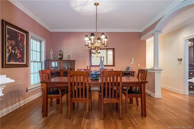 A traditional Colonial set on a quiet, tree-lined street, completely updated and refreshed with understated elegance throughout. Enter through the beautiful light-filled front foyer open to the second-floor stairwell. A formal dining room is to the left and a living room is to the right, both featuring rich hardwood floors and thoughtful architectural detail and that add depth and texture to the rooms. The large and pristine chef's kitchen is well-equipped with upscale appliances, new marble countertops and island, and a convenient wet bar area with a wine cooler. The kitchen leads to a great room that features a grand floor-to-ceiling fireplace. French doors lead to the spacious back deck. The first-floor laundry room serves as a handy mudroom between the garage and kitchen. Upstairs is a large primary suite that includes a spacious ensuite bathroom, two walk-in closets, and an office/sitting room with another stairwell leading to the kitchen area. There are two more bedrooms and another updated full bath on the second floor. There is also a third story unfinished attic ready to be transformed into a studio, gym, playroom, extra bedroom, or office. The walk-out basement is partially finished and leads to the new heated gunite pool in the back yard. The grounds have been professionally landscaped, and new fencing has been installed for additional privacy and security.