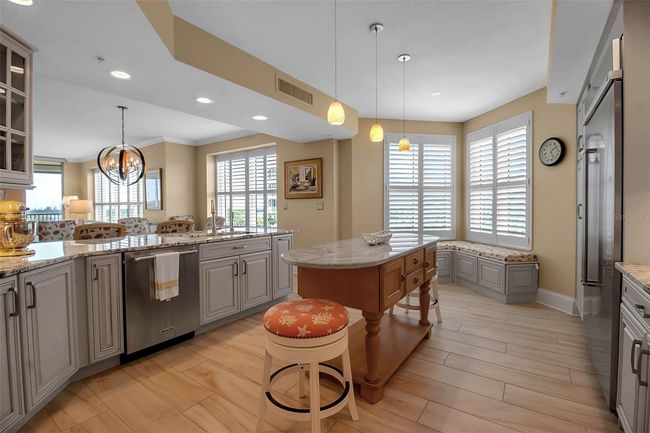 COMPLETELY UPDATED WITH GORGEOUS VIEWS! Prepare to be captivated by this updated 3 bedroom, 3 bath condo in Meridian at The Oaks Preserve. This spacious residence offers a carefree, luxury lifestyle with a private elevator, open layout, and stunning views from the screened balcony. The kitchen features ample counter space, KitchenAid stainless steel appliances, and white cabinetry. The master suite includes balcony access, custom closets, and a luxurious bathroom with a soaking tub and walk-in shower. Additional features include impact glass, Kevlar windows, a dry bar, crown molding, custom lighting, and a renovated laundry room. As residents of The Meridian enjoy exclusive access to a private pool, spa, and workout room, as well as The Oaks Club’s golf courses, tennis courts, pickleball courts, WellFit Center, and social offerings. Club membership is required with homeownership.