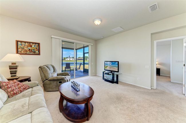 Welcome to this well-maintained home with a BRAND NEW ROOF (June 2025) in the desirable Harrison Ranch community! This 3 bedroom, 2 bathroom property offers comfortable living with a functional layout and peaceful pond views. Step inside to an open concept layout with a split bedroom floor plan, offering both privacy and flow. Large windows allow natural light to pour in, highlighting the home's neutral paint colors throughout. The spacious kitchen features a breakfast bar and a cozy eat-in space—ideal for casual dining or entertaining guests. Outside, relax on your screened-in lanai or enjoy the tranquil water views from your extended patio deck overlooking the large pond. The home is beautifully landscaped and fully equipped with hurricane shutters, gutters, and an irrigation system for added convenience and peace of mind. Harrison Ranch features a 24-hour gym, heated junior Olympic pool and 5.5 miles of nature trails! There are also tennis courts and a brand new basketball & pickleball court. An activity director is also on-site, putting on fun events for young families as well as active adults. Tampa, St. Pete and Sarasota are all within 45 minutes, making this a perfect central location. Whether you're starting your day with coffee by the water or hosting friends and family, this home checks all the boxes for easy Florida living.