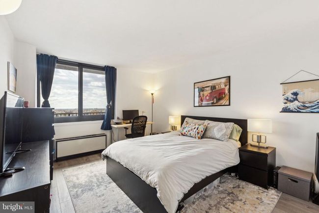 Fully renovated one bedroom with a French balcony boasting southern city views at Academy House. This south-facing home features modern finishes, an updated kitchen and bathroom, beautiful natural light, and vinyl floors throughout. Enter through the foyer with coat closet into the light-filled great room with open living/dining room and kitchen, perfect for entertaining. The living space offers access to the French balcony overlooking southern Philadelphia. The fully updated kitchen boasts dark shaker cabinetry, white quartz countertops, white tile backsplash, stainless steel dishwasher and oven with electric range and hood, black Galanz fridge, recessed lighting and an island with additional cabinetry and breakfast bar. The spacious bedroom has an oversized window, wall closet, and large walk-in closet. Adjacent is the brand new modern bathroom featuring a sleek gray vanity, light up mirror, walk-in shower with designer tilework, tile floor, and laundry closet with stacked washer/dryer. There is excellent closet space throughout. Residents of Academy House enjoy a 24-hour doorman and a state-of-the-art fitness and aquatic center. There is valet parking in the building's garage for an additional monthly fee, subject to availability. The Academy House is located in the heart of Center City and within close walking distance to Rittenhouse Square, Washington Square, and the Broad Street and Market Street office corridors. The Philadelphia International Airport and Amtrak's 30th Street Station are easily accessible.