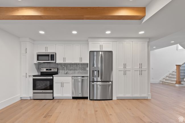 RECENTLY APPRAISED! Experience refined living in this beautifully designed brand new home where timeless style meets modern comfort. Step inside to gorgeous hardwood floors, natural oak finishes, and large picturesque windows that fill the space with light. Custom craftsmanship shines throughout with stunning accent walls and beautiful cabinetry in every room. The gourmet kitchen impresses with imported marble countertops, high-end appliances, and a hidden butler pantry featuring a second fridge, perfect for seamless entertaining. Thoughtful details continue upstairs where one of the two full bathrooms even includes a urinal for added convenience. The master suite is a true retreat complete with a steam and sauna shower, dedicated makeup vanity, and an oversized primary closet. A loft space and dedicated office provide flexibility for work and relaxation. Built-in surround sound flows throughout the home, creating the perfect backdrop for every occasion. Designed for both beauty and efficiency, the home features natural stone, insulated stucco, soffit lighting, and high-quality insulation. The finished basement offers a kitchenette and three spacious bedrooms, ideal for guests or extended family. Entertain in style on the patio equipped with a gas line, surround sound, and pre-wiring for a future hot tub. Additional highlights include RV parking and full landscaping. The natural stone exterior and Nichiha Japanese siding add a sophisticated finish that sets this home apart. A stunning blend of luxury, thoughtful design, and true craftsmanship. Square footage figures are provided as a courtesy estimate only. Buyer is advised to obtain an independent measurement. Please submit pre-approval/proof of funds with all offers. PLEASE INQUIRE ABOUT LENDER RATE BUY DOWN INCENTIVES