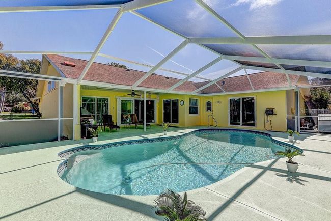Welcome home to Barony Woods, where comfort and style come together. This beautiful home sits on a spacious, fenced half-acre lot, and is more than just a place to live, it’s a place to make memories. From the moment you step inside, you’ll be drawn to the stunning sliding glass wall that opens to the lanai and Pool area, creating a seamless flow between indoor and outdoor living. Whether you're entertaining or just enjoying a quiet evening, your spacious backyard is ready for you. Take a dip in the heated saltwater pool, fire up the grill with the dedicated hookup, and unwind in a space designed for both relaxation and fun. Every detail of this home has been thoughtfully updated. Fresh paint brightens the space, while brand-new vinyl flooring (except in the bedrooms) adds a modern touch. The master bathroom has been beautifully renovated with granite countertops, and both the kitchen and laundry rooms feature stylish new cabinetry upgrades. Cooking is a breeze in the upgraded kitchen, complete with granite countertops, a new garbage disposal, and plenty of space to bring your culinary ideas to life. Practical upgrades like a tankless water heater and a new A/C system mean you can enjoy year-round comfort and efficiency. Plus, pet doors make life easier for your furry family members, and if you ever want to switch from electric to propane, this home gives you that flexibility. This isn’t just a house—it’s a place to truly call home. Schedule your tour today.
