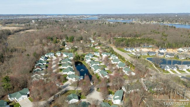 Tucked away on a quiet cul-de-sac, this 3-bedroom, 3-bathroom Saddlebrook condo offers serene pond views & a thoughtfully updated interior. This easy living ranch style condo has a lovely primary bedroom w/ensuite bath & a conveniently located laundry room in the hall. The open-concept layout features a living room with cozy fireplace & a recently updated kitchen with new countertops, backsplash, & appliances. 2021 upgrades also include a high-efficiency furnace, A/C, water heater, & a beautifully remodeled lower-level bath. The walk-out lower level opens to a private patio overlooking the water--perfect for relaxing or entertaining. Enjoy easy access to scenic bike and walking trails, as well as Spring Lake Country Club. A perfect blend of comfort, convenience, & low maintenance living.
