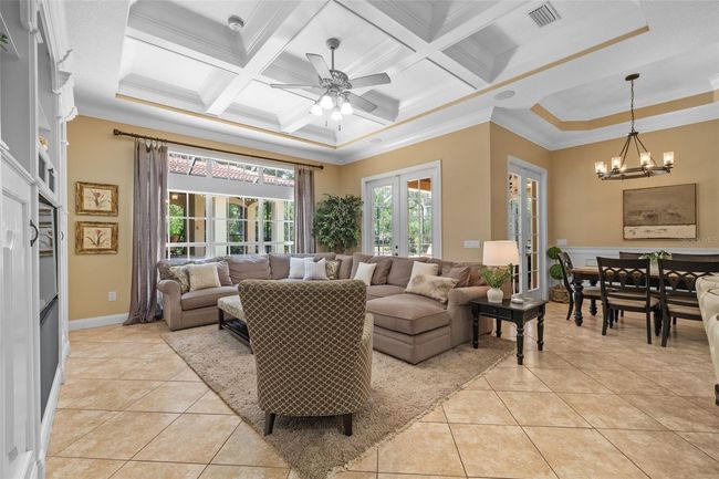 Luxury meets lifestyle in this stunning, custom-built Bayfair home nestled on a premium, oversized .36-acre lot in the exclusive gated community of Bella Vista, located in the heart of Carrollwood, Lake Magdalene area. Boasting over 4, 100 square feet, this thoughtfully designed residence offers 4 bedrooms, 4.5 baths, plus a dedicated office, movie room, game room, home gym, and a 24x8 storage room. From the moment you arrive, the beautifully landscaped lawn and welcoming front porch set the tone. Inside, the home is filled with architectural charm, including arched entryways, crown molding, and wainscoting throughout. The office has been recently updated with stylish black trim, adding a modern, elevated look. The formal dining room connects to a butler’s pantry with extra cabinetry, counter space, and a wine fridge, creating a seamless flow into the updated chef’s kitchen. Featuring new Viking appliances—including oven, cooktop, and dishwasher—plus a Thermador refrigerator and oversized island, this kitchen is a dream for cooking and entertaining alike. The family room offers custom built-ins, a coffered ceiling, abundant natural light from large windows, and French doors that open to the outdoor living space. Just off the family room are two additional flex spaces currently being used as a movie room and game room, complete with an impressive EuroCave wine fridge holding up to 146 bottles. The primary suite, located on the first floor, offers its own French door access to the lanai, with a luxurious ensuite bath featuring two walk-in closets with custom shelving, dual vanities, a soaking tub, and a walk-in shower. Upstairs, you’ll find a second bedroom with its own private bath, two additional bedrooms with a Jack and Jill bath, a home gym, and the oversized storage room. Step outside into your own private retreat, complete with a heated saltwater pool, oversized spa, covered outdoor living space perfect for family dinners and entertaining, serene pond views, lush landscaping, and a cozy fire pit for evening gatherings. Additional features include a new roof (August 2024), whole-house generator with automatic transfer switch, water filtration system, plantation shutters and more. Conveniently located near I-275, just 20 minutes to downtown Tampa and 25 minutes to Tampa International Airport, with shopping, dining, and Carrollwood Day School—a top-ranked IB program—less than a mile away, this home truly offers the perfect blend of elegance, comfort, and convenience.