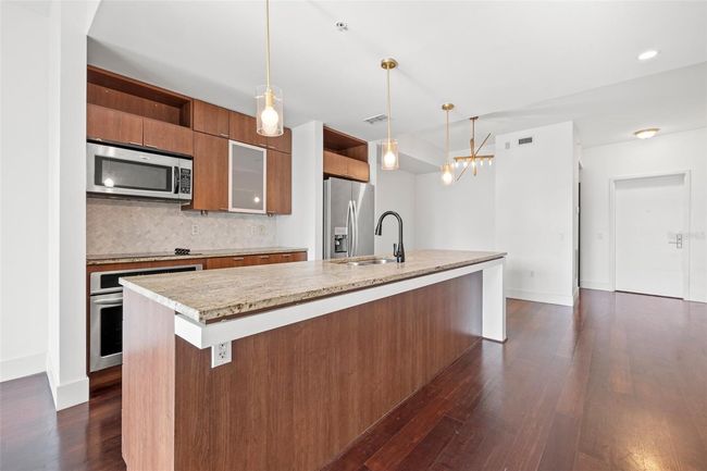 One or more photo(s) has been virtually staged. RARE PRICE AND OPPORTUNITY. Welcome to The Place at Channelside, where modern comfort meets the best of Downtown Tampa living. This 1 bedroom, 1 bathroom condo offers a peaceful setting on the quiet western side of the building with tranquil views of 12th Street and a charming city park. Located on the third floor, this unit features engineered wood floors, granite countertops, and a full-sized washer and dryer for everyday convenience. The spacious kitchen opens to a light filled living area with access to a private balcony, perfect for enjoying your morning coffee or evening unwind. The bathroom includes both a soaking tub and separate frosted glass shower, while the bedroom offers a generous walk-in closet and abundant natural light. Residents enjoy resort style amenities including a third floor pool and spa deck, fitness center, and club room with pool table and co-working space. The building provides secure access, concierge service, on-site management, and one assigned parking space. Ideally situated between Water Street and the emerging Gasworx District, this location is steps from restaurants, entertainment, Benchmark International Arena, Sparkman Wharf, and the Tampa Riverwalk.