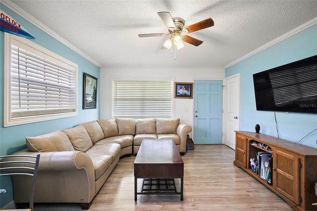 Under contract-accepting backup offers. Experience the epitome of easy, low-maintenance Florida lifestyle with this stunning, completely remodeled SECOND FLOOR END unit, offering a relaxed living experience just 10 minutes from downtown MOUNT DORA! Enjoy serene views of the community pool and common area from this 2-bedroom home, which received a complete makeover in 2023. The esthetically pleasing space boasts new vinyl laminate flooring throughout, complemented by pops of color. The recently renovated kitchen is a chef's delight, featuring all-new cabinets, countertops, sink, faucet, microwave, and a wonderful, custom-built wall unit that maximizes space and function. The bathroom is equally updated with a new medicine cabinet, vanity, mirror, lighting, and a cute corner storage unit. Every room shines with new touches, including new lighting, baseboards, crown molding, window trim, and blinds, along with new electrical outlets, switches, a new thermostat, and smoke detectors. Best of all, a NEW HVAC system was just installed in 2022, making this home truly move-in ready. The primary bedroom is enhanced with a large walk-in closet. Community amenities include a refreshing pool, on-site laundry facilities, and extra storage space. Conveniently located just about a mile from the Tavares Waterfront Seaplane Park, you are a short walk or golf cart ride away from vibrant festivals, fireworks, waterfront restaurants, live music, the Dora Queen, and the Chain-of-Lakes access, featuring a playground, park, boat ramps, volleyball, and seaplane viewing. This golf-cart-friendly community is also just minutes to Eustis and Mount Dora for even more activities and shopping.