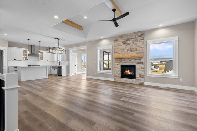 IMMEDIATE POSSESSION AVAILABLE! This spacious floor plan features a four seasons room with steps down to the back yard. Kitchen has white cabinets with an island, subway tile backsplash, hard surface counter tops, pantry, and stainless steel appliances with gas range with hood vent. White trim and white doors. Black hardware and lighting throughout. Upgraded lighting package. Great room with gas fireplace with stone surround. Primary suite has a trey ceiling, walk-in closet and a private bathroom with subway tiled shower and double sinks. Custom swing shower door installed. Walkout lower level has a family room with a snack bar with cabinets and sink, bedrooms 4 and 5, and bathroom. Madden Addition features a paved walking trail and pedestrian bridge that connects to the Clear Creek Trail System. Photos of the actual property.