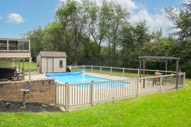 This beautifully maintained 3-bed, 2-bath home sits on just over an acre and offers space, comfort, and endless possibilities. The full finished walkout basement includes a bonus room—perfect for a 4th bedroom or office—with ample space to add a 5th bedroom and bath. The eat-in kitchen offers generous storage, and the dining room opens through French doors to a balcony overlooking the inground pool, hot tub, and large covered/uncovered patio. A pool shed adds extra convenience. Fresh paint and new carpet upstairs make this home move-in ready. Oversized garage with room for a workshop or craft space—don't miss it!